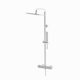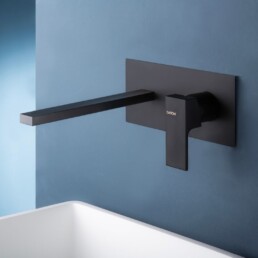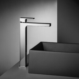 Una evolución del minimalismo formal enriquecida por detalles de estricto perfil geométrico, ideal para cuartos de baño de aire moderno.