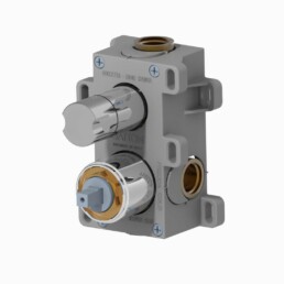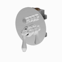 El cuerpo redondeado y los insertos de palanca combinan a la perfección con el estilo industrial de estos mezcladores, dando un toque inconfundible al entorno del baño.