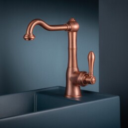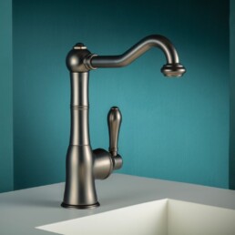 Inspirada en el lago de Orta, el lugar donde nació y creció Gattoni, esta serie de mezcladores combina hábilmente reminiscencias barrocas con líneas más modernas e internacionales.