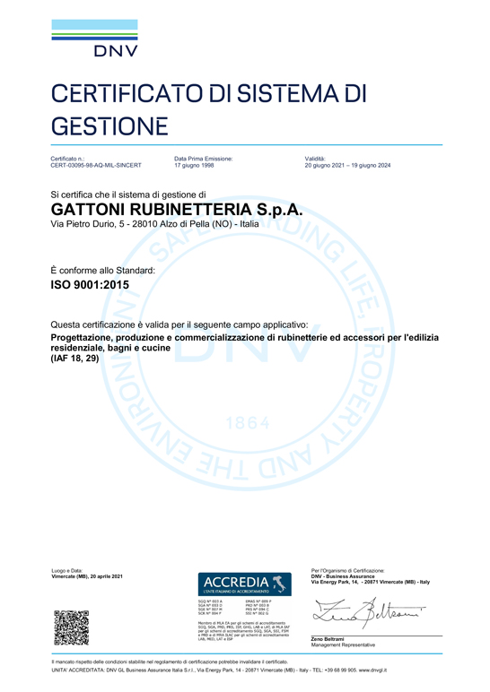 Gattoni Rubinetteria ha adottato linee di condotta a tutela della salute, della sicurezza e dell’ambiente per essere già oggi – e continuare a essere nel futuro – sempre più preparata, innovativa, all’avanguardia.