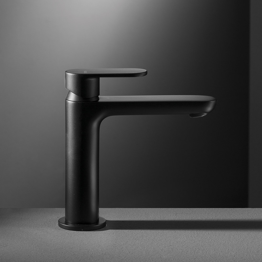Miscelatore lavabo con piletta regolabile con tappo a scatto e flex inox di alimentazione.