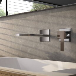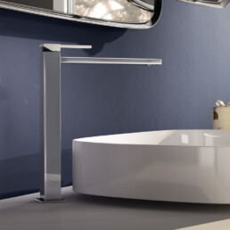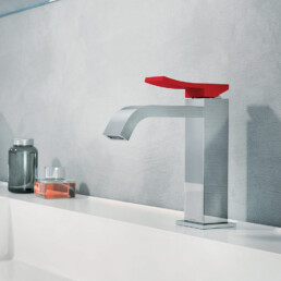 Miscelatore lavabo con piletta regolabile con tappo a scatto, flex inox di alimentazione, bocca 150 mm.