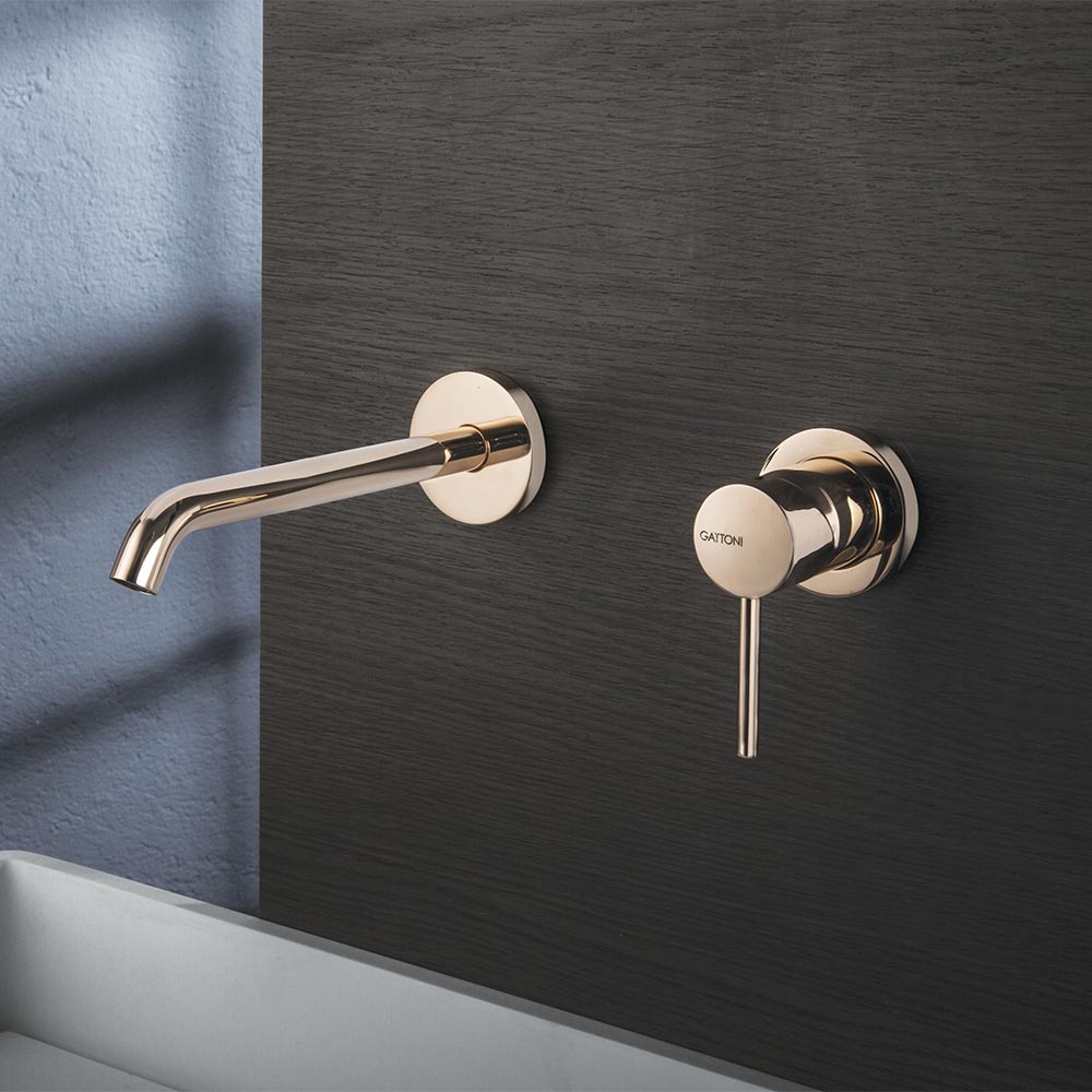 Miscelatore lavabo a muro con bocca erogazione 208 mm.